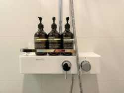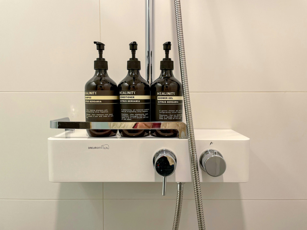 Brusesystemet kan anvendes sammen med gennemstrømsvarmere fra 18 kW/h og har en minimumsgennemstrømning på 7 liter pr. minut. Det kan desuden udvides med en valgfri EasyReach-bakke til opbevaring af bruseprodukter.
